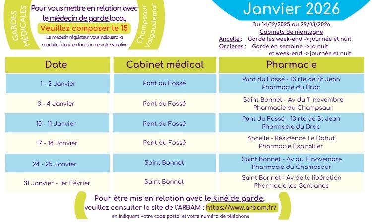 Planning des gardes Janvier 2026